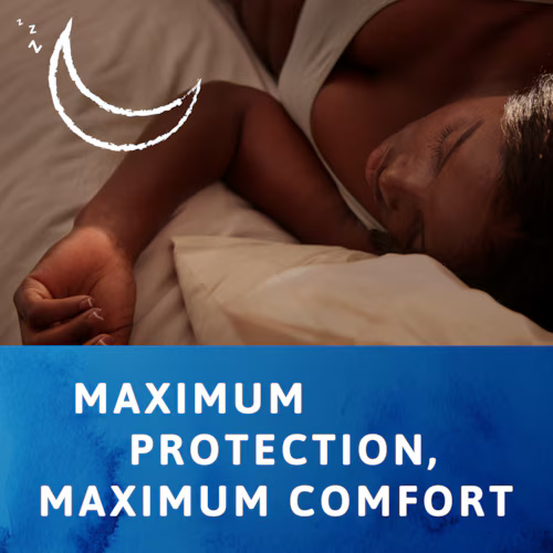 TENA Discreet Protect+ Maxi Night med trippelt skydd mot läckage, lukt och fukt är den perfekta nattbindan för kvinnor med större urinläckage. Bindan kan också användas efter förlossning eller operation. Vätskan absorberas snabbt från huden och kapslas in i bindan för upp till 12 timmars skydd. De avancerade mikropärlorna reducerar oönskad lukt. Bindorna är extra långa och breda baktill för överlägset skydd och så kallad ”lie-down protection” som ger optimal säkerhet i liggande position. Det mjuka, andningsbara materialet gör bindan mycket bekväm så att du kan sova tryggt och lugnt hela natten. Skyddet har högsta absorptionsförmåga och passar därför även bra för nyförlösta mammor eller efter operation.