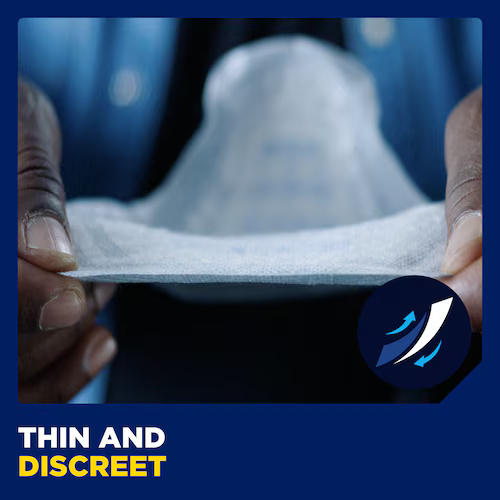Skyddet har en anatomiskt formad, mjuk skålform som följer mannens kropp för bästa möjliga komfort och passform. Tack vare den självhäftande tejpen sitter skyddet säkert på plats i åtsittande kalsonger utan att röra sig. TENA Men Level 1 är engångsförpackade för diskret och hygienisk användning, perfekt för vardagen, arbetet eller träningen.