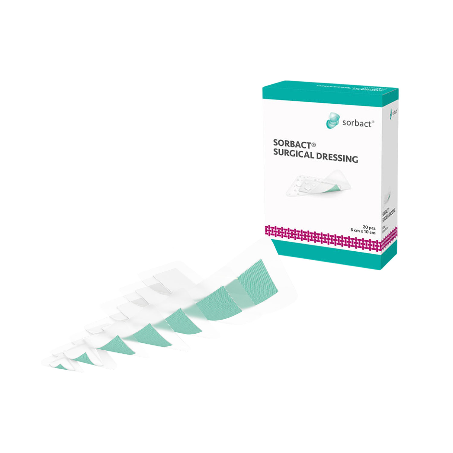 Minskar den mikrobiella belastningen i torra till lätt vätskande sår. Sorbact® Surgical Dressing är ett bakterie- och svampbindande sårförband baserat på Sorbact® Technology. Förbandet består av ett DACC™-impregnerat Sorbact® sårkontaktlager på en absorberande dyna samt en genomskinlig självhäftande akrylatfilm. Den dusch- och bakteriesäkra filmen skyddar mot yttre kontaminering och tillåter att överflödigt exsudat kan avdunsta. Förbandet förebygger och behandlar sårinfektioner och underlättar sårläkningsprocessen.