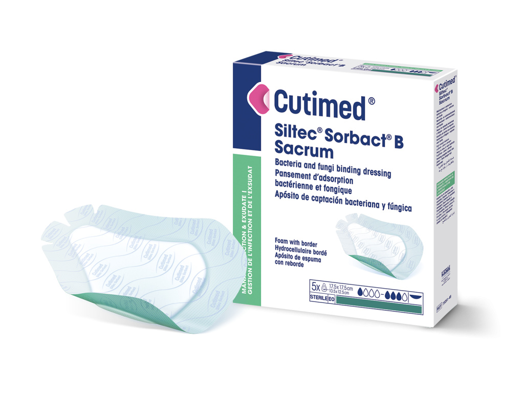 Det hudvänliga allt-i-ett-förbandet som reducerar mikrobiell belastning. Cutimed® Siltec® Sorbact® B / Cutimed® Siltec® Sorbact® B Sacrum är ett bakterie- och svampbindande sårförband baserat på Sorbact® Technology. Förbandet består av ett Sorbact DACC™-impregnerat sårkontaktlager kombinerat med ett absorberande polyuretanskum som innehåller superabsorberande kanaler och en hudvänlig häftkant av silikon.