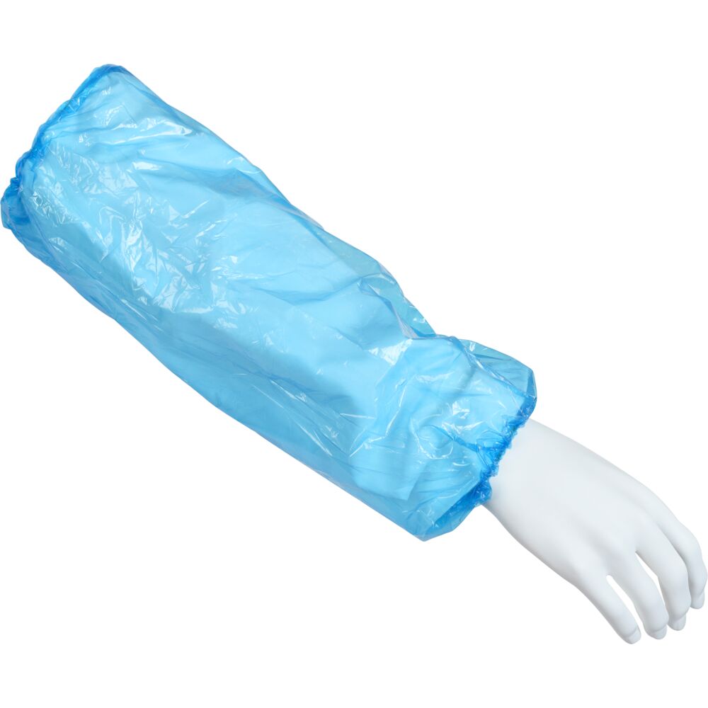 Engångsärmskydd av plast med resår. Används för att skydda användaren där en hög hygienstandard krävs, t.ex. i sjukvårdssektorn, i livsmedelsindustrin eller i produktions- eller produktförpackningslinjer.