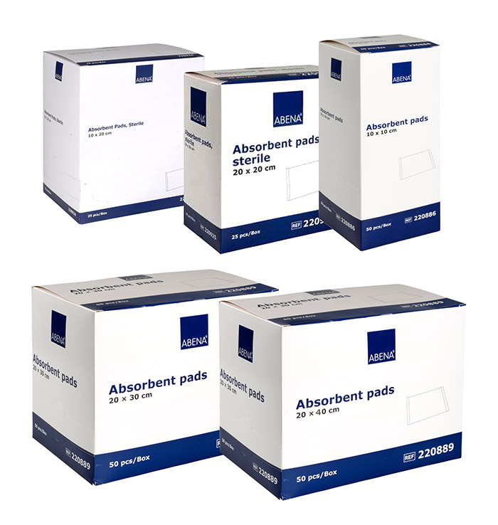 ABENA absorberande förband kombinerar en mjuk kontaktyta med hög absorptionsförmåga för absorption av sårvätskor. Produkten består av en mjuk, non-woven-sida mot huden, en högabsorberande fluffkärna och en vätskeavvisande, andningsbar blå baksida. Används som absorberande sekundärförband på måttligt till svårt vätskande sår. Måste fixeras, kan inte klippas.