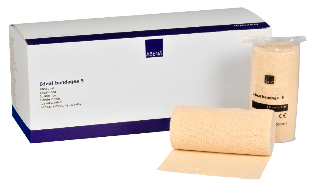 ABENA Ideal binda 5 innehåller 100 % bomull vilket gör kompressen mycket hudvänlig, och låter huden andas. Bindan är resistent mot salvor och liknande. Används som stödbandage vid trauma mot leder och muskler, samt vid efterbehandling av frakturer. Kan också användas för fixering av sårförband, skenor och liknande.