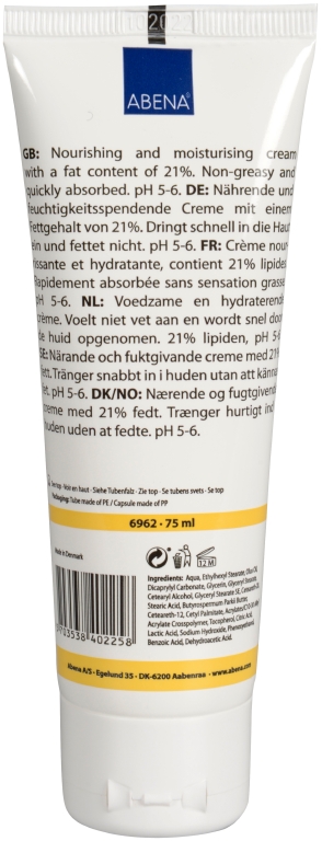 Mild vårdande handkräm som snabbt absorberas in i huden. Tack vare ett högt innehåll av vegetabiliska oljor, återfuktas huden utan att kännas fet. Innehåller glycerin som bibehåller fukt i huden. Handkrämen passar alla hudtyper och kan användas dagligen. Handkrämen kan finns i två olika fettinnehåll, 35 % fett och 21 % fett, båda är utan parfym. Endast för utvärtes bruk. Undvik ögonkontakt.