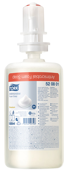 Tvätta händerna noggrant med Tork Antimikrobiell Skumtvål som är certifierad enligt standarden EN 1499. Dess formulering med låg mängd alkohol är mycket effektiv mot bakterier, virus och svampar. Den kombinerar normal handtvätt och desinfektion i en och samma tvättprocedur. Dessutom är den parfym- och färgfri för att minska allergiska reaktioner. Passar i Tork Dispenser Skumtvål som har certifierats ”Easy to use” och ger god handhygien