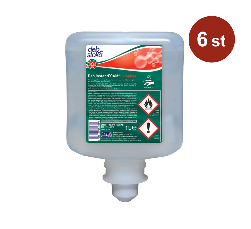 Alkoholbaserad skumhanddesinfektion med återfuktande ingredienser. Används utan vatten och tar bort 99,999% av de vanligast förekommande bakterierna på endast 15 sekunder. Patron för dispenser.