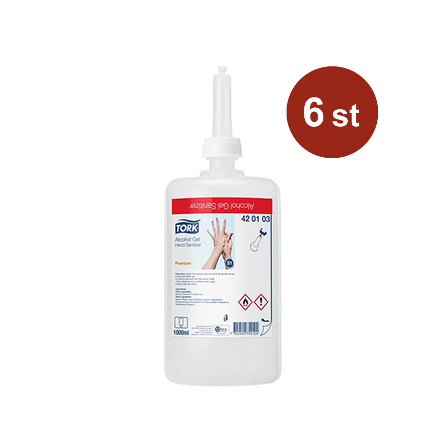 Tork Alkoholgel Handesinfektion är en effektiv desinfektion. Den är idealisk när inte vatten finns tillgängligt. Gelen gör det enkelt att blöta händerna utan droppande. Den klibbar inte även vid frekvent användning. Den är oparfyrmerad och har mjukgörande ingredienser som förhindrar uttorkning. Effektiv: Effektiv mot bakterier, svampar och olika typer av virus Enkel att använda: Gelen antar vätkseform när den gnuggas in jämnt. Inget droppande Hygienisk: Refillflaska med engångspump minskar risken för korskontaminering Hållbar: Flaskan "krymper" ihop efter hand som den används, vilket minskar avfallsvolymen Premiumkvalitet: Mjukgörnade ingredienser för frekvent användning utan att det klibbar
