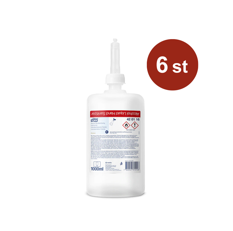 Tork Flytande Handdesinfektion med 80 % (v/v) denaturerad alkohol är effektiv och idealisk för handrengöring när inget vatten finns tillgängligt. Den är oparfymerad, lämnar inga klibbiga rester på huden och har återfuktande egenskaper som skyddar händerna, även vid frekvent användning. Passar i Tork Dispenser Flytande Tvål som är enkel att använda och ger alla användare utmärkt handhygien.