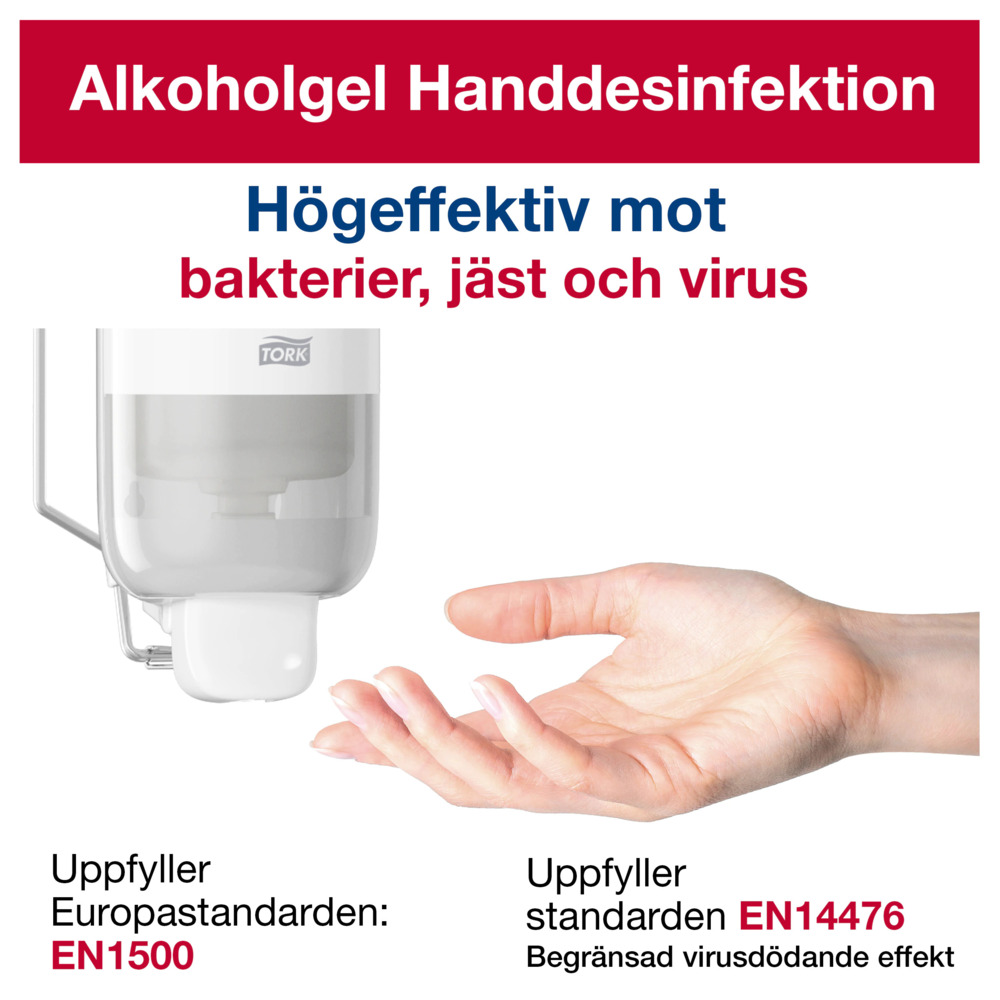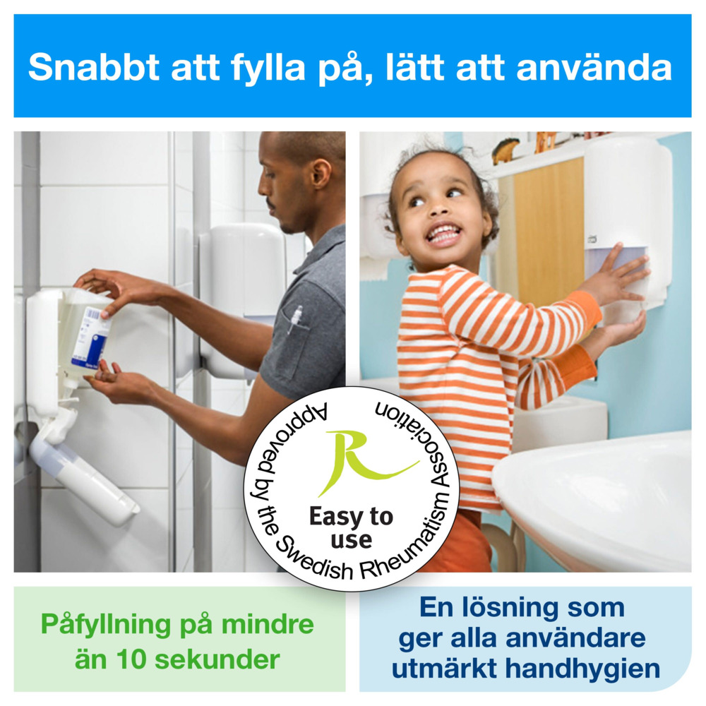 Passar i alla Tork Skincare Dispensrar (S4). Uppfyller kraven i EN 1500, EN 12791 och EN 14476 (helt virusdödande).