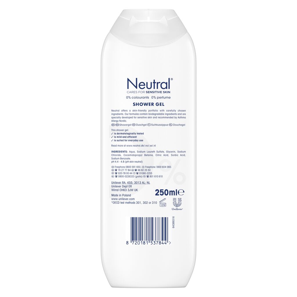 Duschkräm Neutral är en mild och effektiv duschgel speciellt framtagen för känslig hud. Produkten är helt parfymfri och fri från färgämnen, vilket minskar risken för irritationer och överkänslighet. Duschkrämen rengör skonsamt svett och smuts och lämnar huden ren och behaglig efter varje användning. Passar för daglig användning på hela kroppen och är dermatologiskt testad med ett balanserat pH-värde som är skonsamt mot huden. Produkten är miljömärkt och rekommenderad för känslig hud.