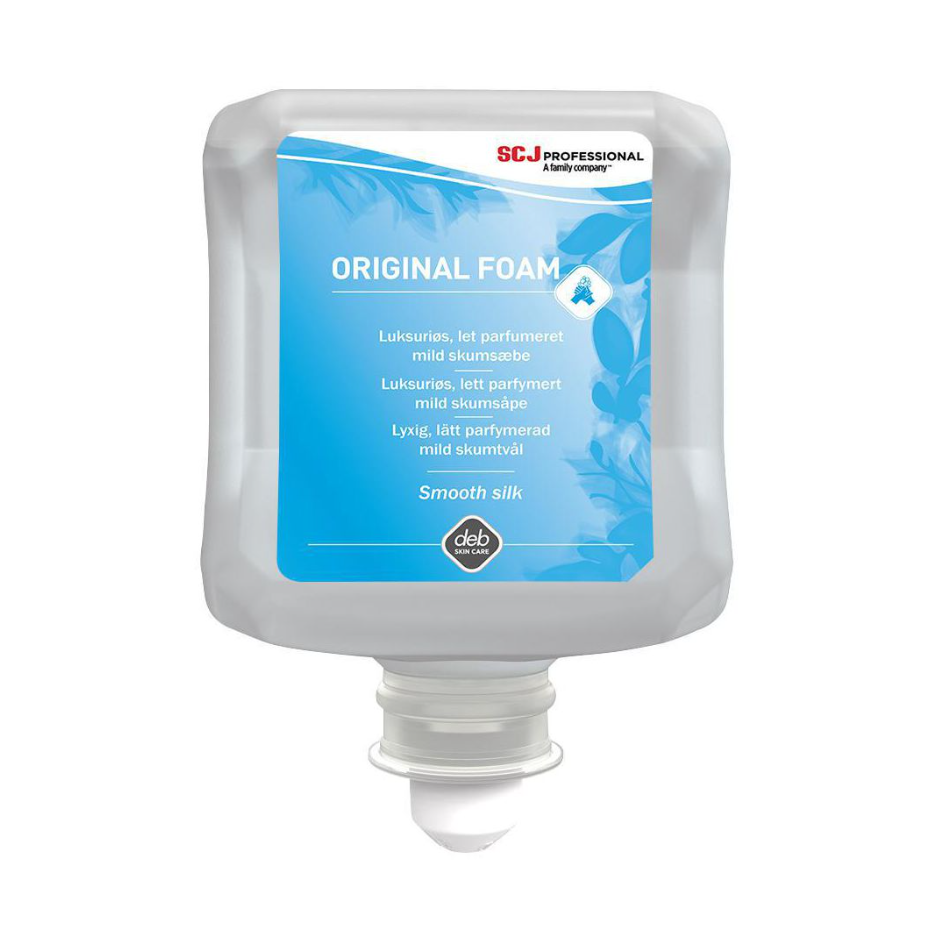 Deb Original Foam är en lätt parfymerad och färgämnesfri skumtvål med en fräsch doft av Smooth Silk. Den innehåller hudvårdande ingredienser som återfuktar huden och förebygger uttorkning. Skumreceptet är fylligt och biologiskt nedbrytbart, vilket ger en effektiv rengöring som tar bort över 99 % av smuts och bakterier. Endast ett tryck ger en fullgod handtvätt när produkten används korrekt. Patronlösningen är anpassad för dispenseranvändning.