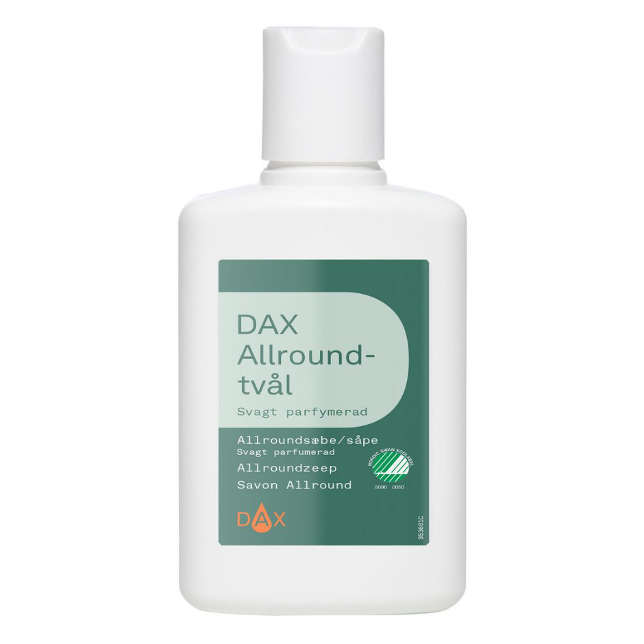 DAX Allroundtvål är en extra mild och krämig duschtvål som passar för både kropp och hår. Produkten rengör huden skonsamt utan att torka ut och lämnar en fräsch känsla efter användning. Den är utvecklad för frekvent användning och är lämplig i både professionella miljöer och hemmabruk.