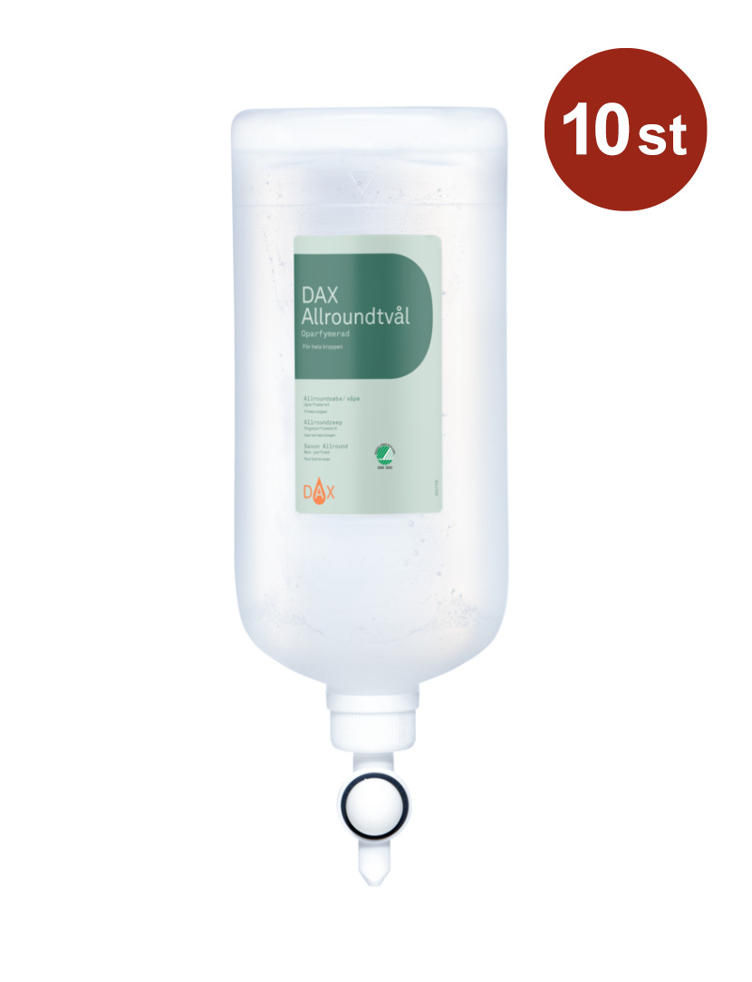 DAX Allroundtvål är en extra mild och krämig allroundtvål för hela kroppen. Produkten finns som svagt parfymerad eller oparfymerad och är miljömärkt med Svanen.
