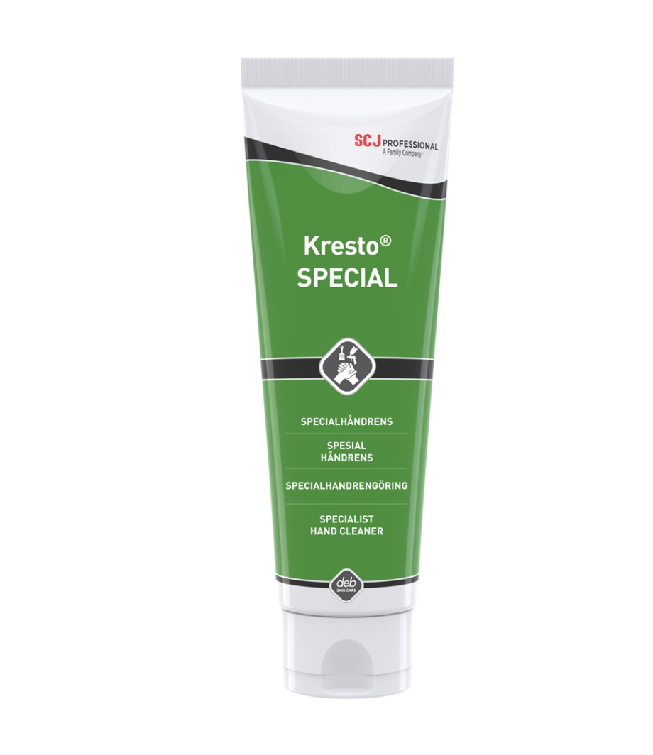 Deb Kresto Special Ultra är en effektiv handrengöring i 250 ml tub, utvecklad för professionellt bruk där djupgående rengöring krävs utan att huden skadas. Produkten innehåller milt speciallösningsmedel som rengör på djupet och en leraktig matrix med 100 % aktiva ingredienser, vilket gör att endast en liten mängd behövs för maximal effekt.