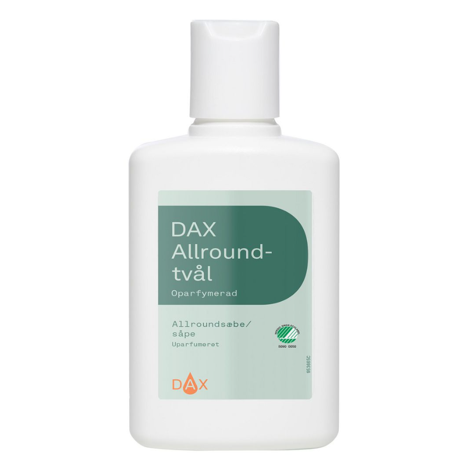 DAX Allround-tvål är en mild och skonsam tvål för hela kroppen, även vid frekvent användning. Produkten är oparfymerad och innehåller inga starka kemikalier som kan torka ut huden. Den krämiga konsistensen rengör effektivt och lugnar huden, vilket gör den lämplig för daglig användning på sjukhus, hotell eller hemma.