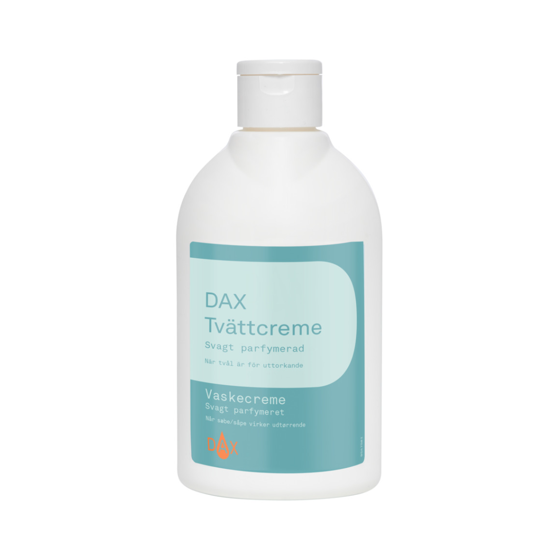 DAX Tvättcreme är en mild rengöringskräm som är särskilt framtagen för känslig och irriterad hud. Den rengör skonsamt samtidigt som den återfuktar och återger huden dess naturliga egenskaper. Produkten är oljebaserad, vilket innebär att den inte behöver sköljas av och skyddar hudens egen barriär.