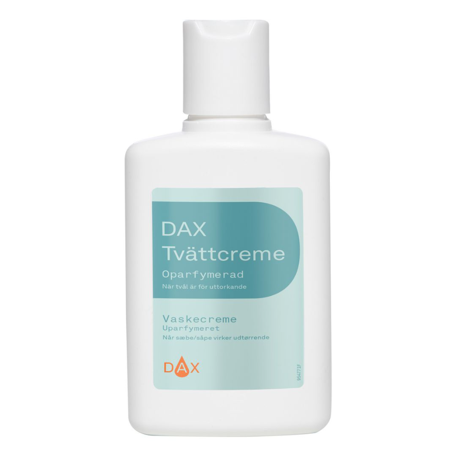 DAX Tvättkräm är en milt rengörande tvättkräm utvecklad för känslig och irriterad hud. Produkten är ett alternativ till tvål och lämpar sig särskilt vid vintertorr hud, intimhygien och babyvård. Den är fuktighetsbevarande och återfettande, vilket hjälper till att skydda hudens naturliga barriär. Formulan är oparfymerad och fri från färgämnen och parabener samt baserad på olja utan tvåltensider.