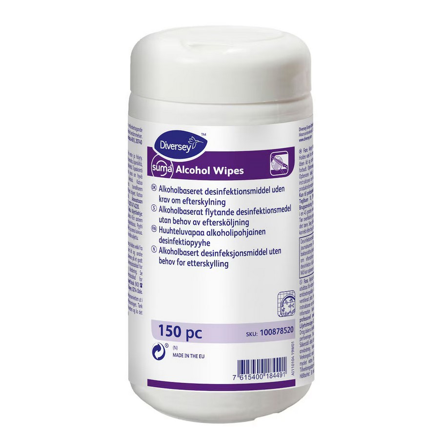 Suma Alcohol Wipes är bruksfärdiga engångsdukar för desinfektion av alla hårda ytor såsom arbetsytor, mindre utrustning, redskap och dörrhandtag.