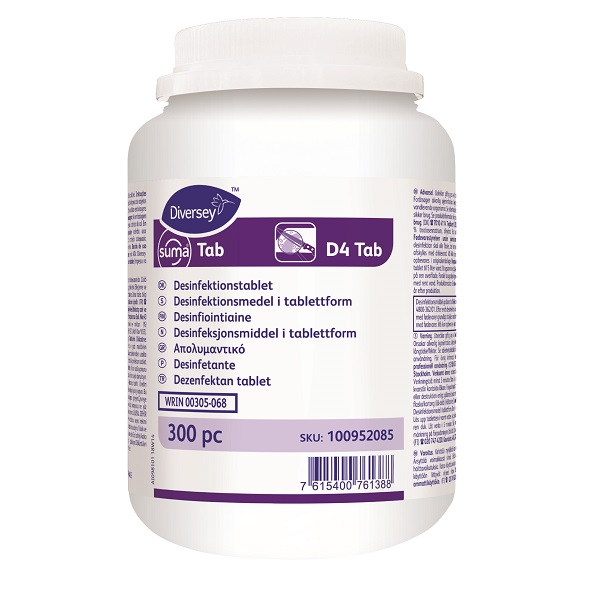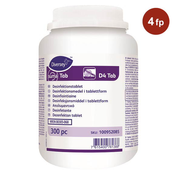 ● Suma Tab D4 är en koncentrerad tablett som är mycket effektiv för desinfektion av alla slags ytor, även utmärkt för ytor som är i direkt kontakt med livsmedel.