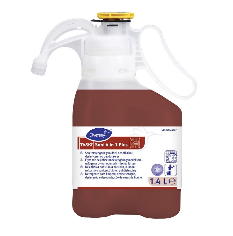 Diversey Taski Sani 4 in 1 Plus Desinficerande Rengöringsmedel som Avlägsnar Avlagringar och Fräschar luften i SmartDose