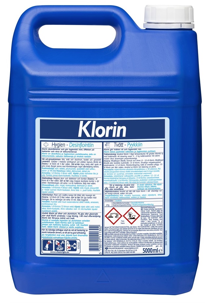 Klorin är en produkt som hjälper dig att hålla hygieniskt rent i hushållet. Bakterier syns inte med blotta ögat. Men de kan orsaka dålig lukt och i värsta fall kan sprida smitta. Klorin innehåller natriumhypoklorit, samma ämne som tillsätts för desinfektion av vårt dricksvatten.