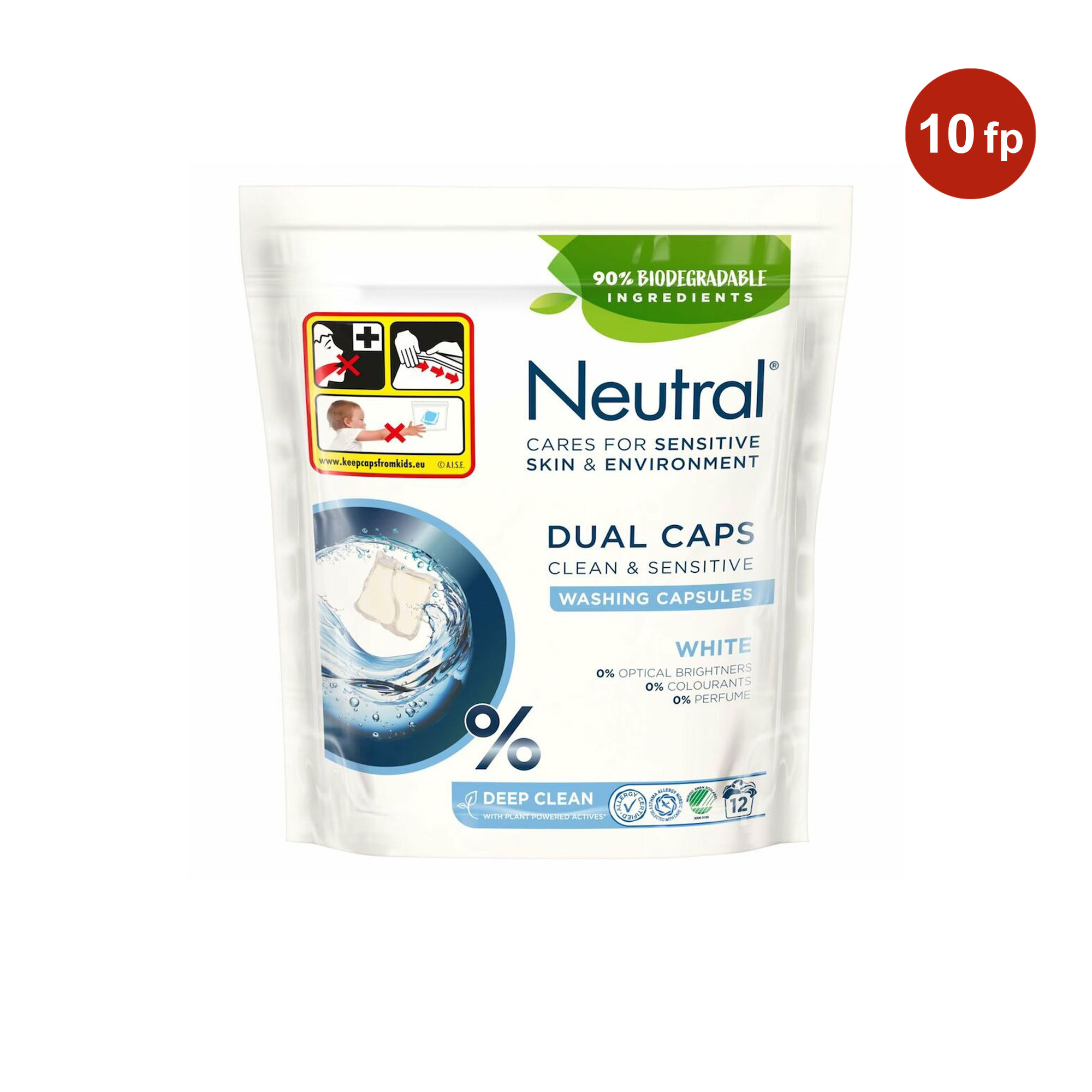 Neutral® är särskilt utvecklad för känslig hud. Neutral® White Duo Caps rengör effektivt och hjälper till att bevara färgerna utan onödiga ingredienser som parfym och färgämnen.