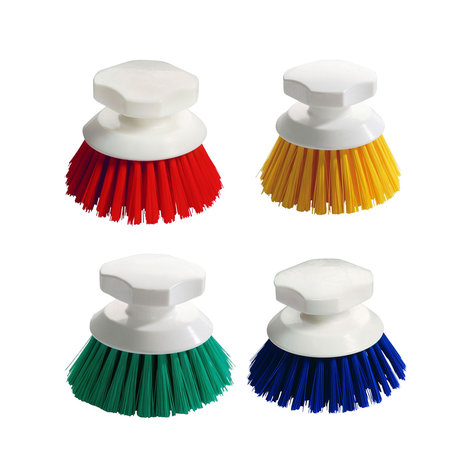 Runda handskurborstar är utmärkta för rengöring av grytor och pannor och invändig rengöring av maskiner. Den upphöjda greppet ökar säkerheten för användaren, då händer och knogar inte rör ytor och kemikalier. Färgkodad för zonindelning och HACCP.