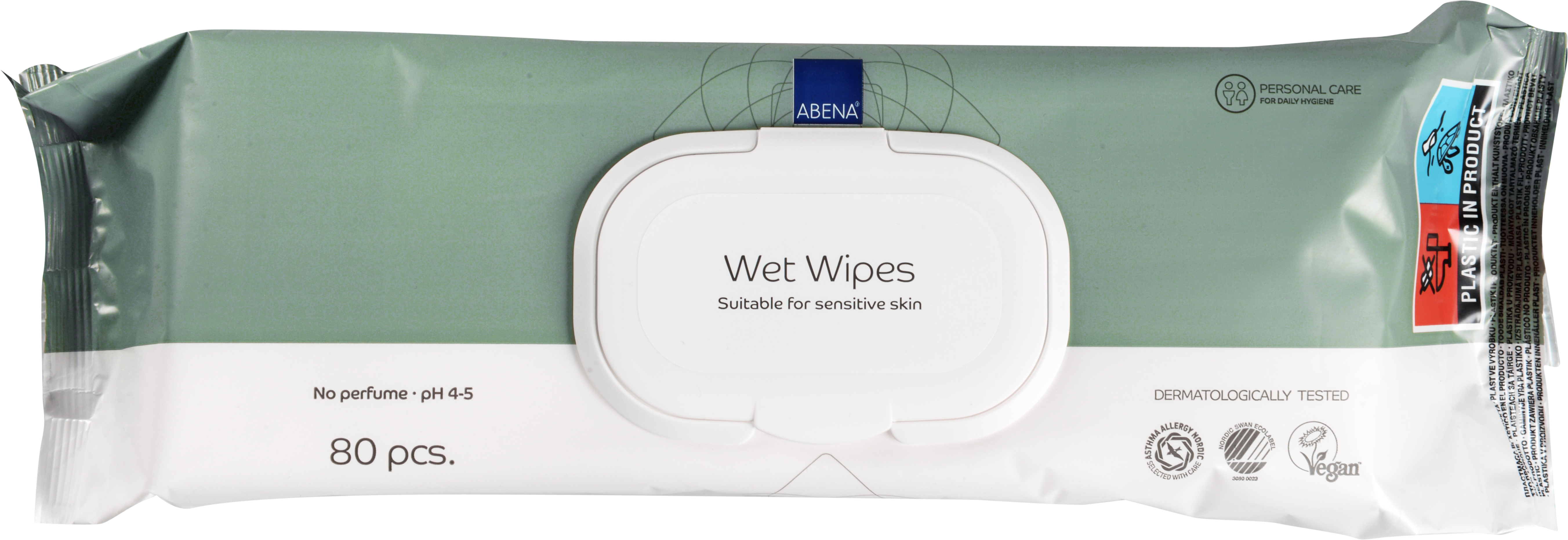 ABENAs våtservetter för personlig hygien är tillverkade av polyester och viskos, vilket gör dem extra mjuka och sköna mot huden. Våra våtservetter är ett bra alternativ till traditionell kroppstvätt med tvål och vatten och tack vare pH-värdet kan de användas över hela kroppen. De tar enkelt och effektivt bort orenheter och oönskade lukter. ABENA våtservetter finns i olika storlekar och förpackningar, vilket gör det enkelt att hitta rätt lösning för dina personliga behov. Och självklart är våtservetterna extremt praktiska att ta med sig när du är på språng.