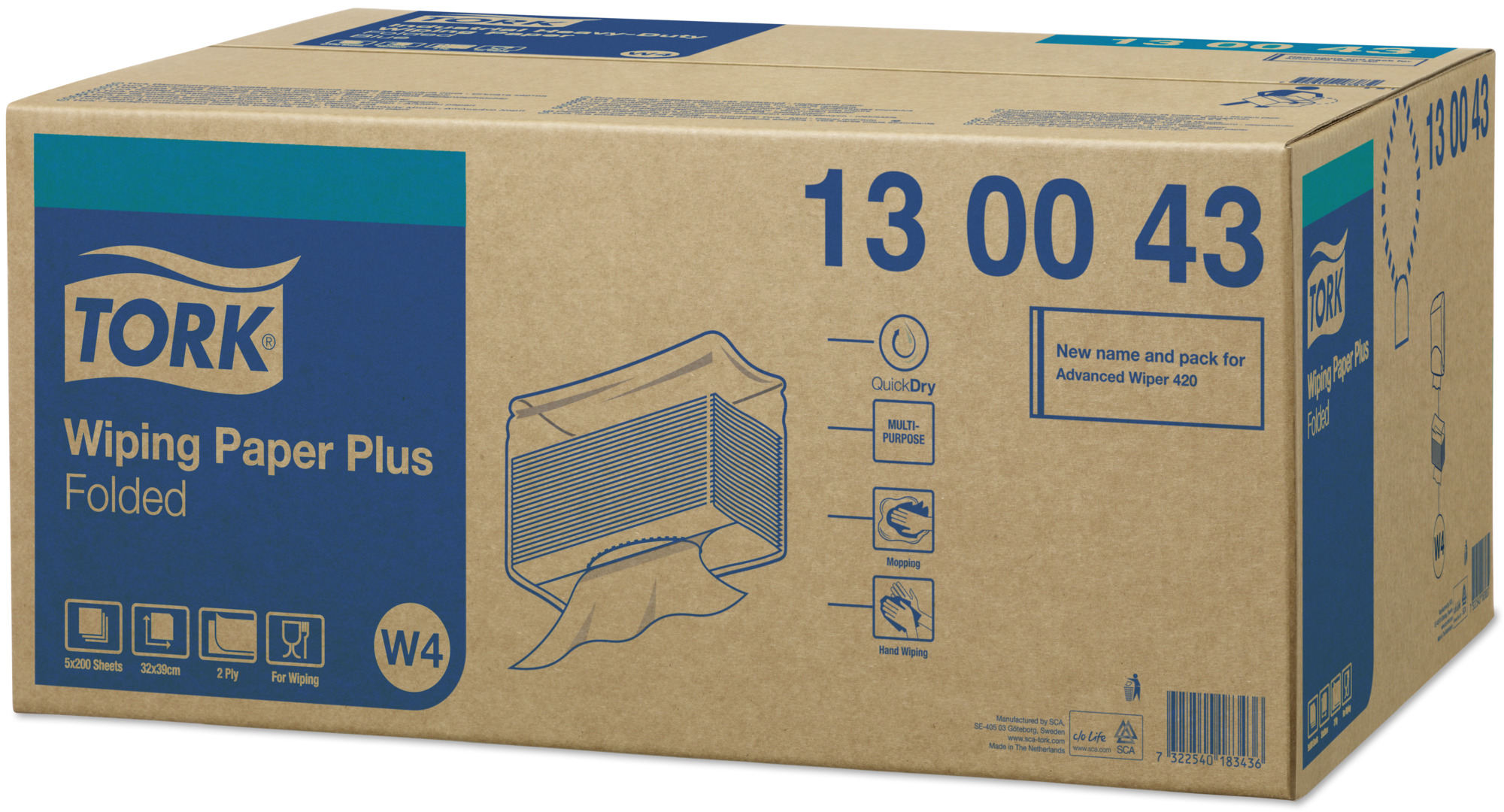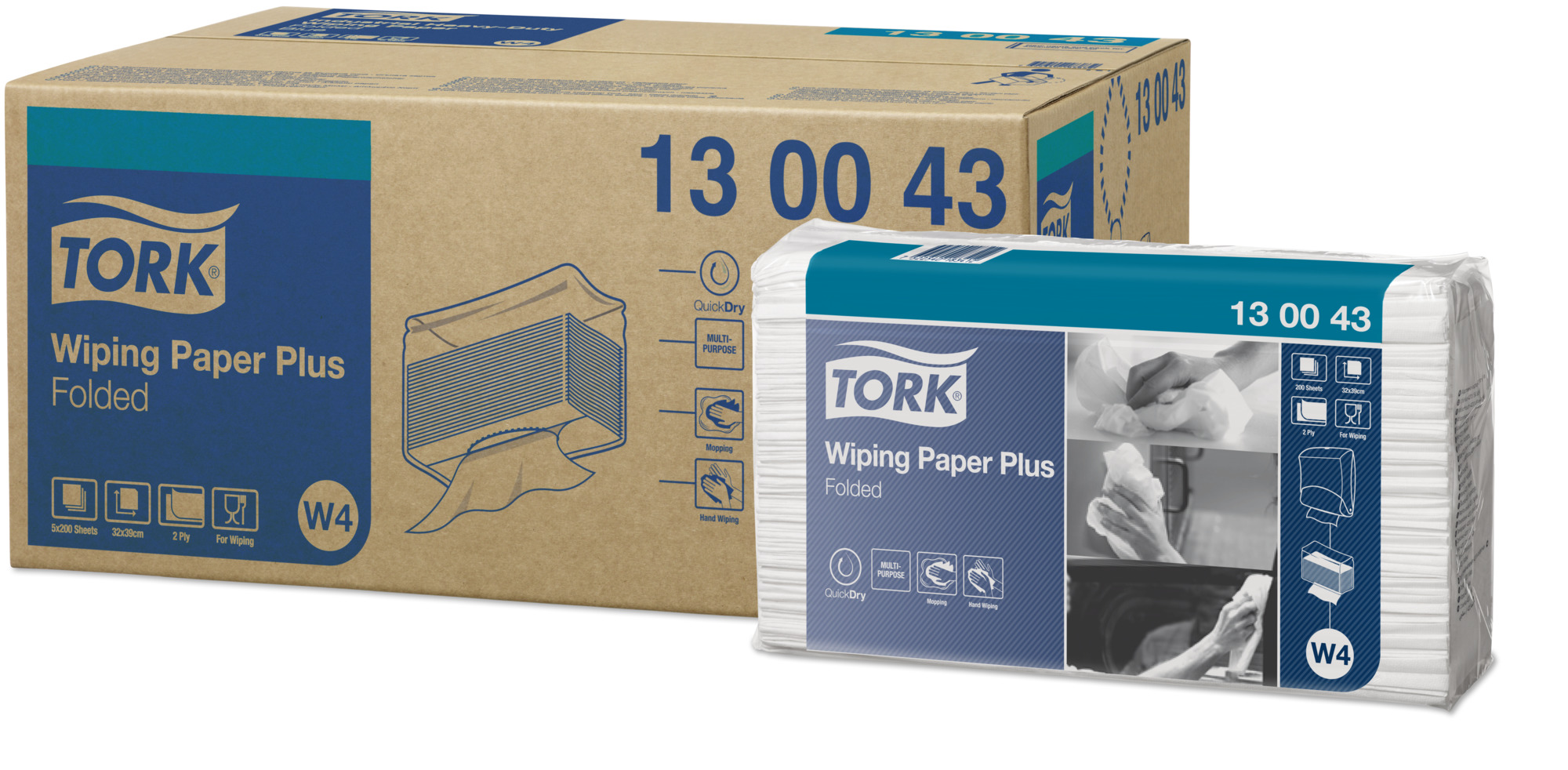 Vårt allround Tork Avtorkningspapper Plus är ett 2-lagers papper som är tillräckligt absorberande för att torka upp vätskor och torka av händerna. Det kan användas med Tork Dispenser Vikta dukar för top-pack, som skyddar refillerna mot smuts och förbättrar hygienen på arbetsplatsen. Dispensern matar ut ett papper i taget, vilket minskar förbrukning och avfall, eftersom personalen endast tar så mycket som behövs.