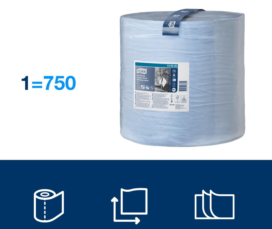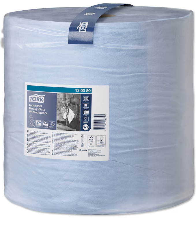 Tork Avtorkningspapper Extra Kraftigt Premium Blå är ett extra starkt 3-lagerspapper med överlägsen absorptionsförmåga. Det är utformat för krävande rengöringsuppgifter och skyddar händerna mot smuts, metallspån och hög värme. Pappret är flexibelt, slitstarkt och kan användas både vått och torrt – perfekt för att avlägsna olja, fett, smörjmedel och annan tuff smuts. Kan användas med Tork golvställ eller väggställ, som erbjuder säker och effektiv avrivning, även med en hand.