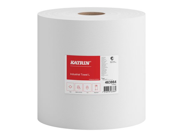Katrin Naturvit L är en industritorkrulle av hög kvalitet, lämplig för avtorkning av både ytor och händer. Den är speciellt utvecklad för att hantera trögflytande vätskor såsom olja och fett. 1-lagers rullen innehåller 1230 m papper, vilket ger en långvarig och kostnadseffektiv lösning. Passar till Katrins golv- eller väggdispenser.