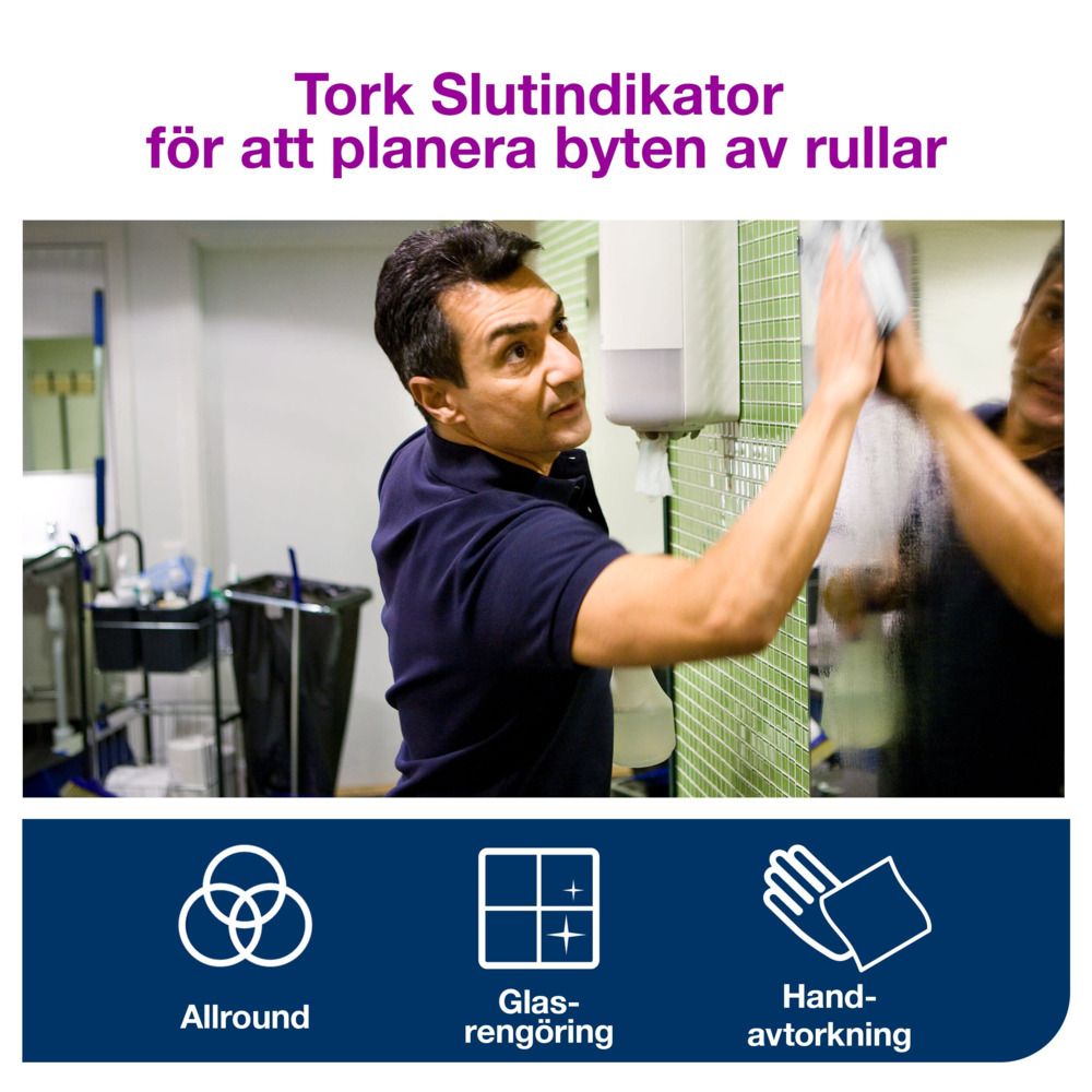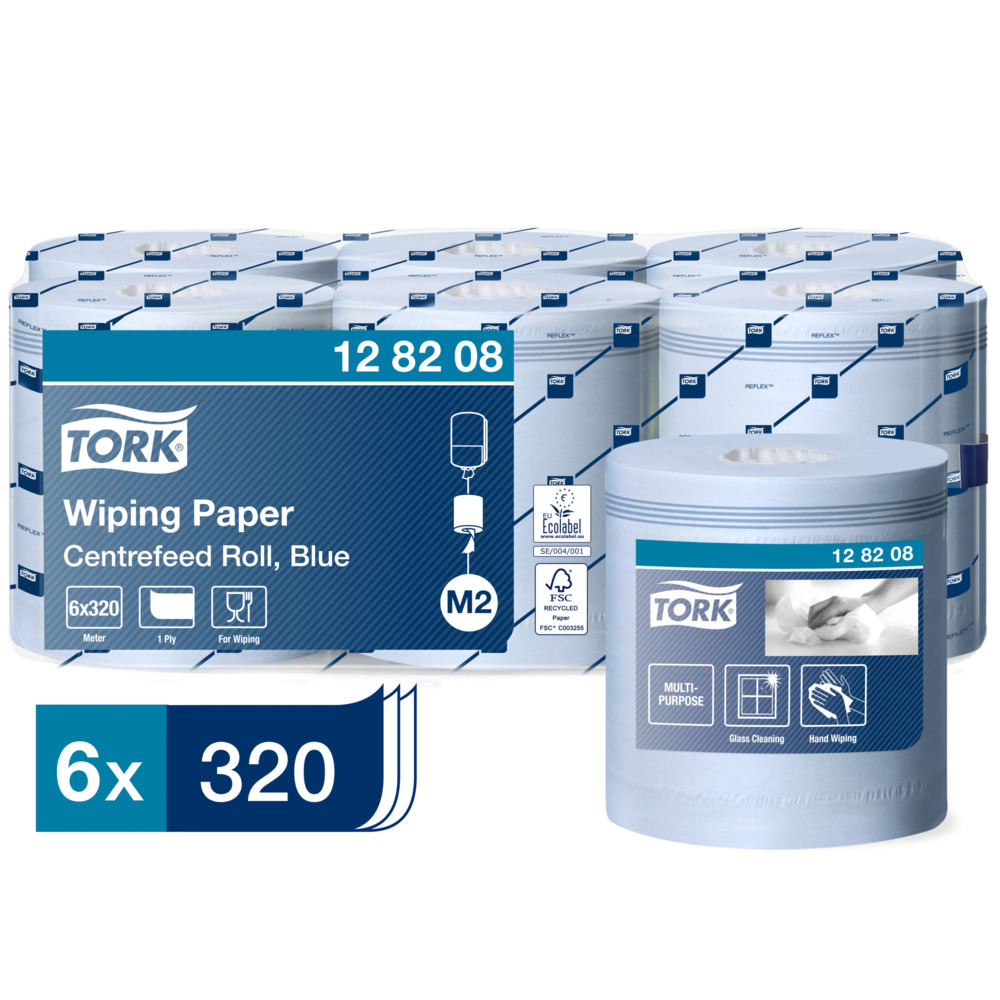 Tork Centrummatad M2 1-Lag Blå är ett allround avtorkningspapper för lättare städuppgifter och handhygien. Det mjuka och absorberande pappret är särskilt lämpligt för glasytor och blanka ytor, då det inte lämnar några ränder eller ludd. Använd tillsammans med Tork Dispenser Centrummatad för enkel enhandsutmatning och ökad effektivitet. Produkten är tillverkad med minskat fossilt CO2-utsläpp genom användning av biogas och certifierad förnybar el.