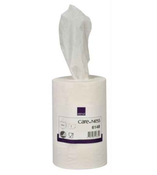 Med torkrullen från Abena :s Care-Ness Excellence-serie kan du effektivt torka av ytor. Produkten är tillverkad av 100 % nyfiber, vilket säkerställer maximal absorptionsförmåga. Rullen är utan hylsa och därför avsedd för dispensrar med centrummatning.