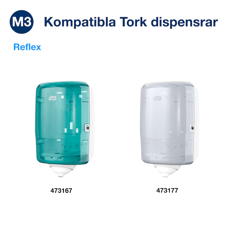 Tork Reflex® Avtorkningspapper är ett 1-lagerspapper vars styrka och höga absorptionsförmåga gör att det passar perfekt för både avtorkning och för att torka händerna. Detta papper kan användas i Tork Reflex® Dispenser Mini Centrummatad som matar ut ett ark i taget och passar ditt teams arbetsflöde, minskar åtgången och minimerar risken för smittspridning.