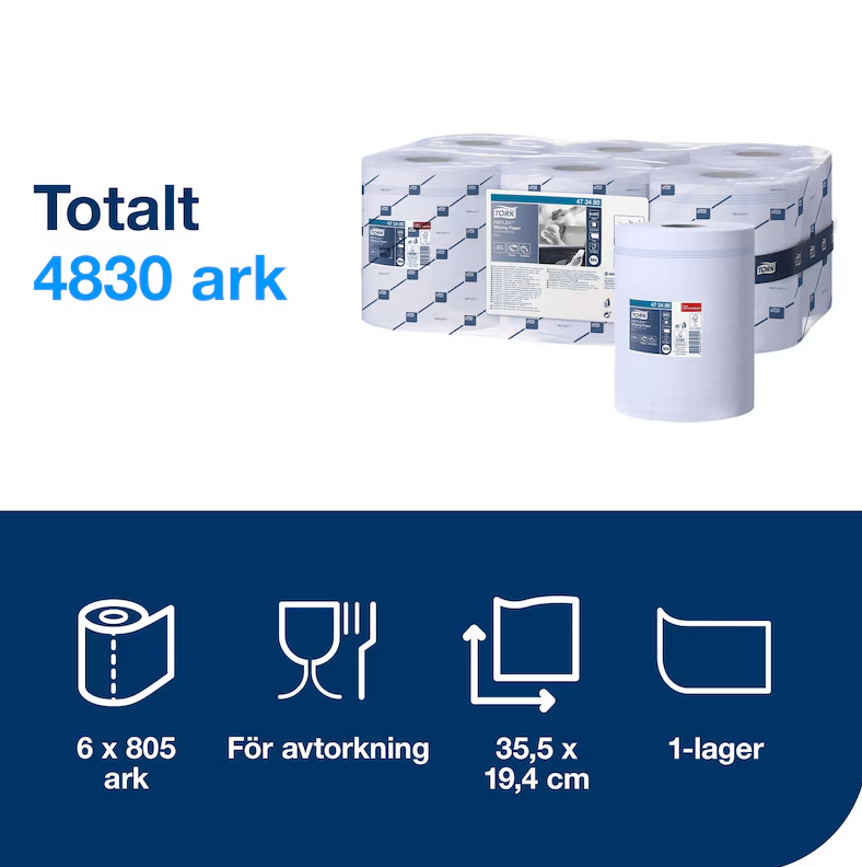 Tork Reflex® Avtorkningspapper är ett 1-lagerspapper vars styrka och höga absorptionsförmåga gör att det passar perfekt för både avtorkning och för att torka händerna. Detta papper kan användas i Tork Reflex® Centrummatad dispenser som matar ut ett ark i taget och passar ditt teams arbetsflöde, minskar åtgången och minimerar risken för smittspridning.