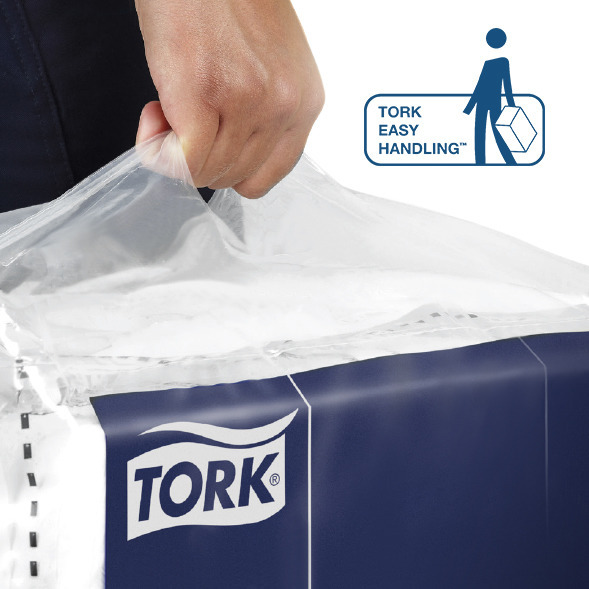 - Tork Easy Handling Carry Pack gör det enklare att transportera, öppna och kassera förpackningen