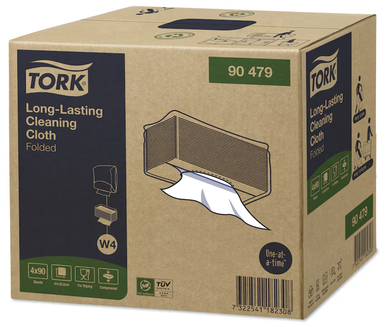 ● Tork Cleaning cloths take up to 80% less space vs rags.***