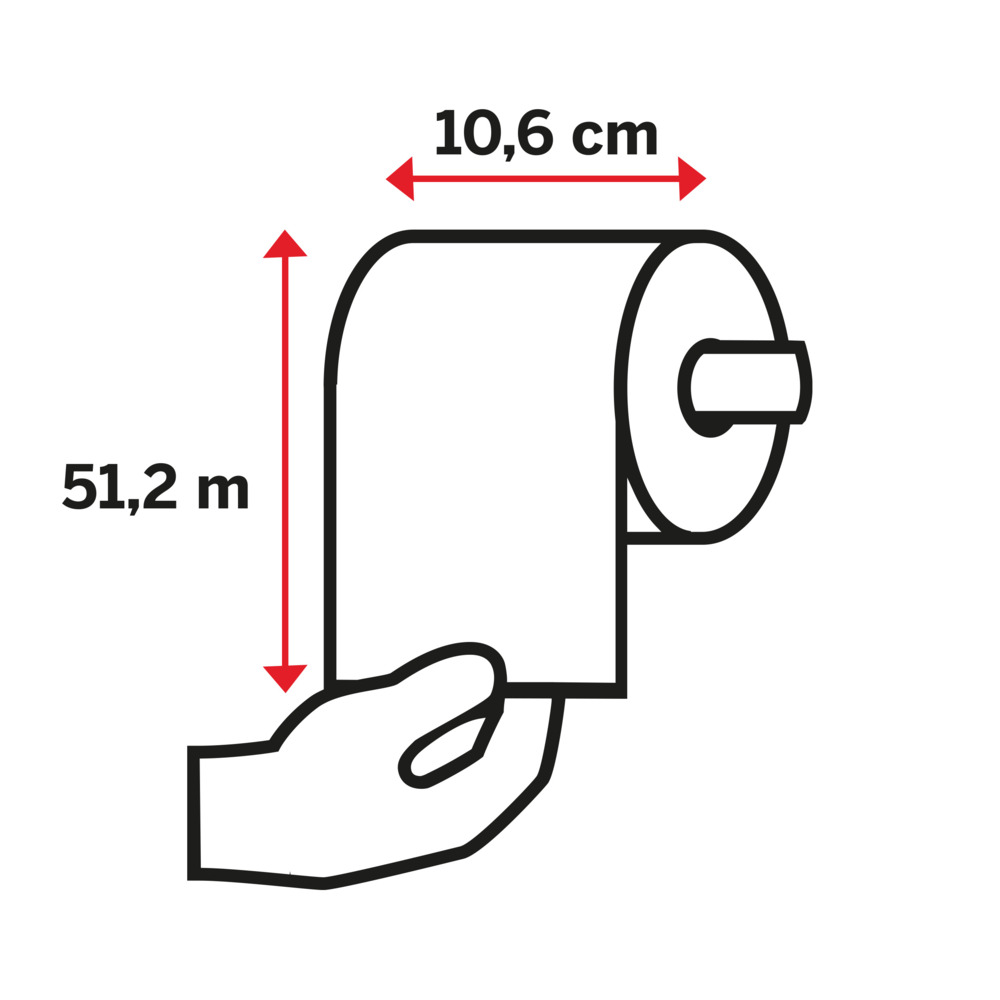 Extra lång toalettrulle med bra egenskaper när det gäller absorption och funktion.