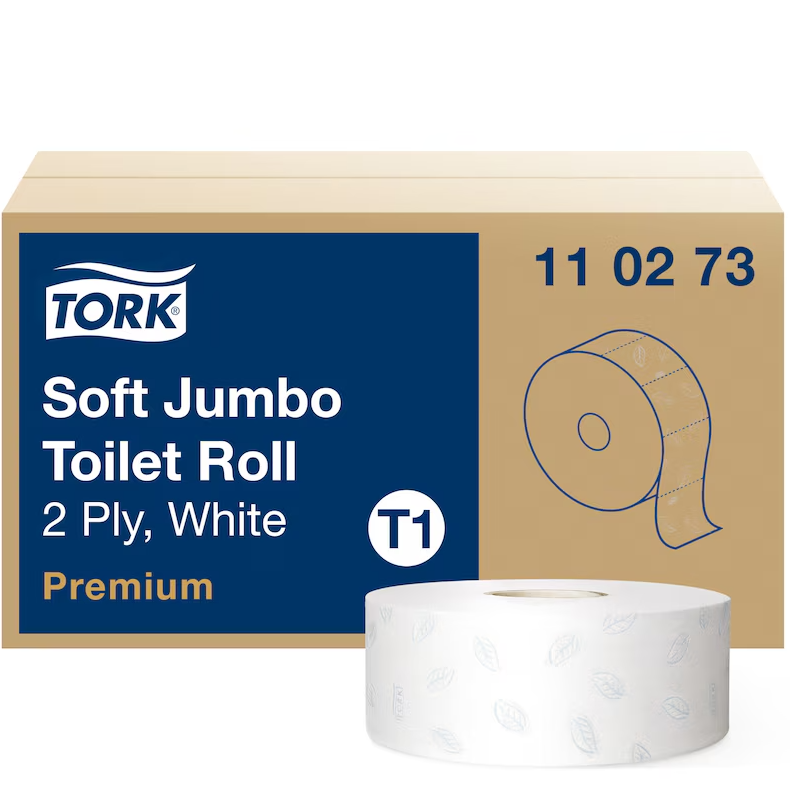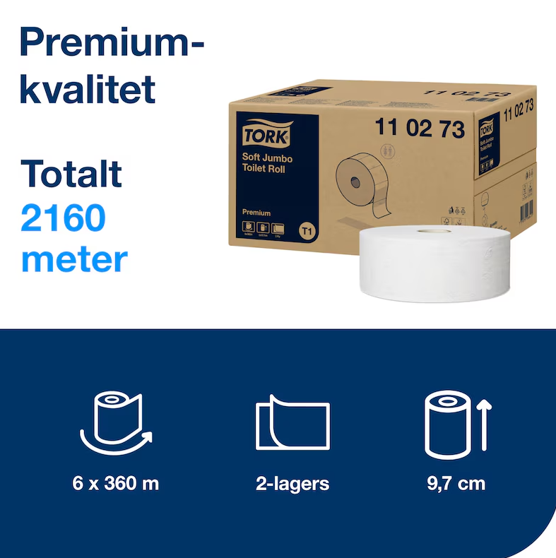 ● Systemet Tork Jumbo innebär effektivt utnyttjande av tiden och minskade kostnader och erbjuder mycket mer toalettpapper än standardrullar. Tork Jumbo toalettpapper med 2 lager erbjuder bästa möjliga utseende, känsla och prestanda och passar perfekt för platser med hög besöksfrekvens.