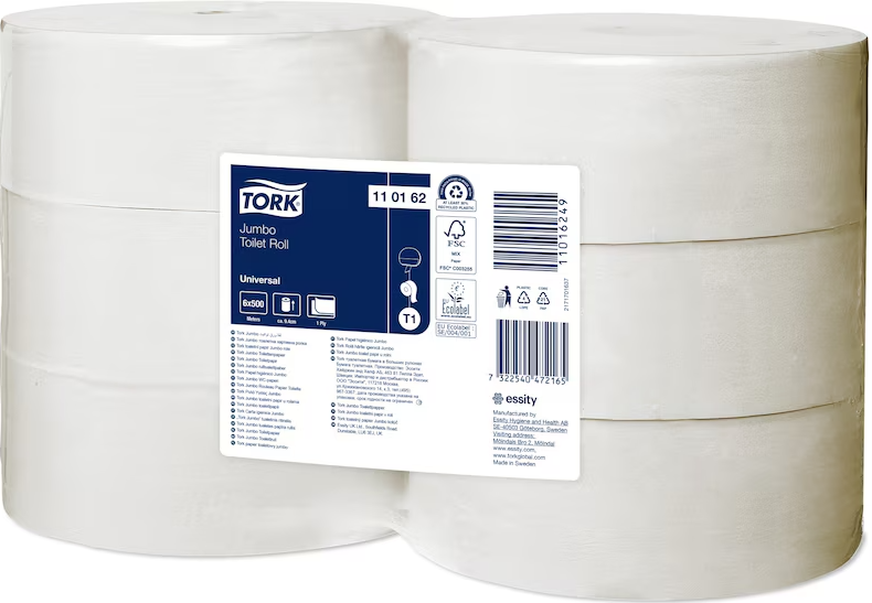 ● Systemet Tork Jumbo innebär effektivt utnyttjande av tiden och minskade kostnader och erbjuder mycket mer toalettpapper än standardrullar. Tork Universal Jumbo toalettpapper med 1 lager tillgodoser de grundläggande behoven för ett toalettutrymme, erbjuder bra värde för pengarna och är lämpligt för platser med hög besöksfrekvens.